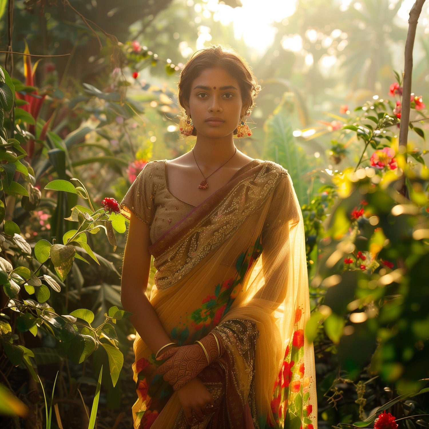 In the twilight glow, vibrant threads weave tales of grace, echoing whispers of timeless beauty.
